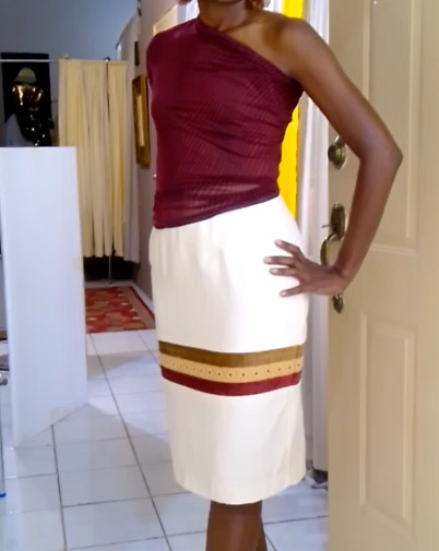 Basic skirts Pattern-drafting Class Module 1: Student wears her completed straight skirt - an adaptation to the basic skirt