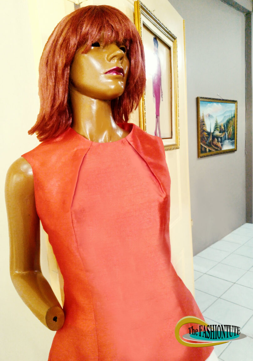 Student successfully fitted mannequin with bodice/ Neck- pleat-dart style